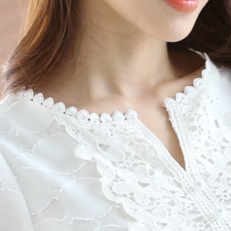 discounted Women New Arrival Spring Basic Chiffon Blouse Shirts Ladies Lace Solid Long Sleeve Casual Tops Embr