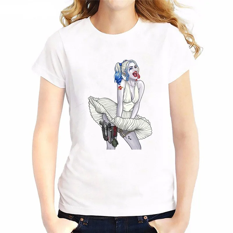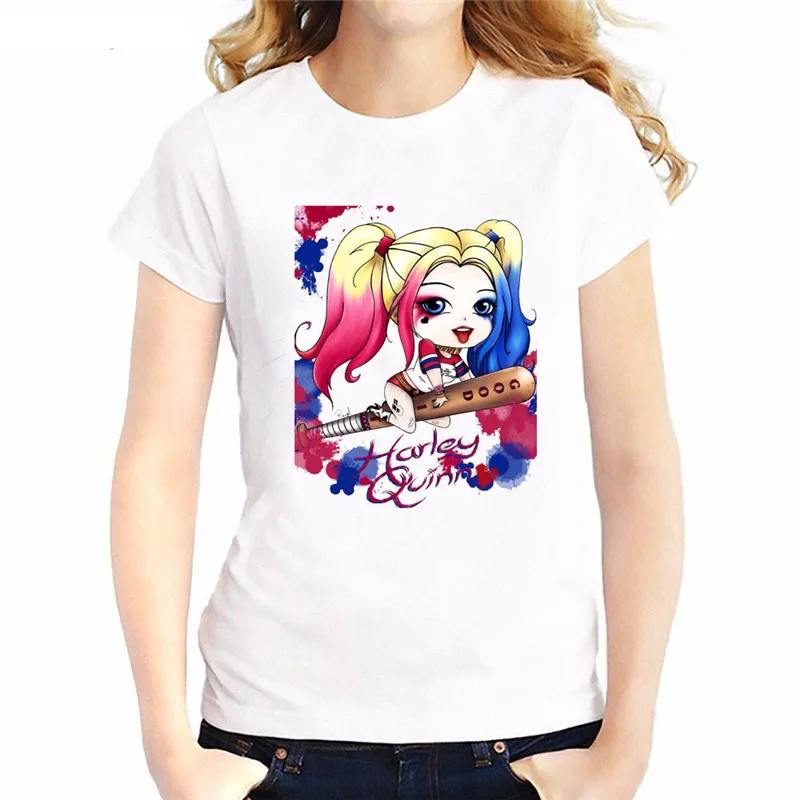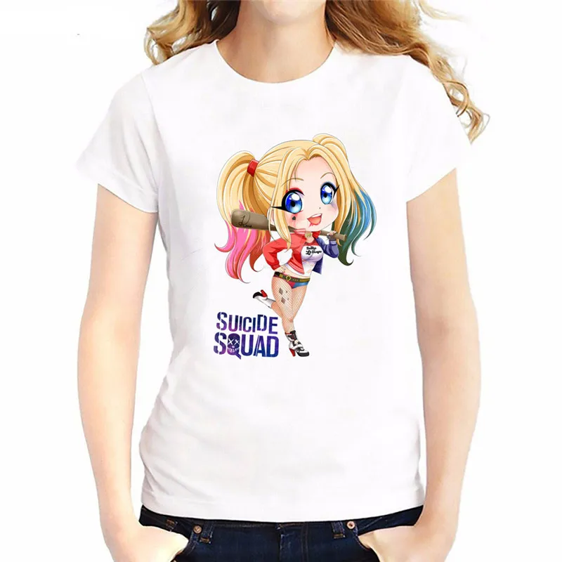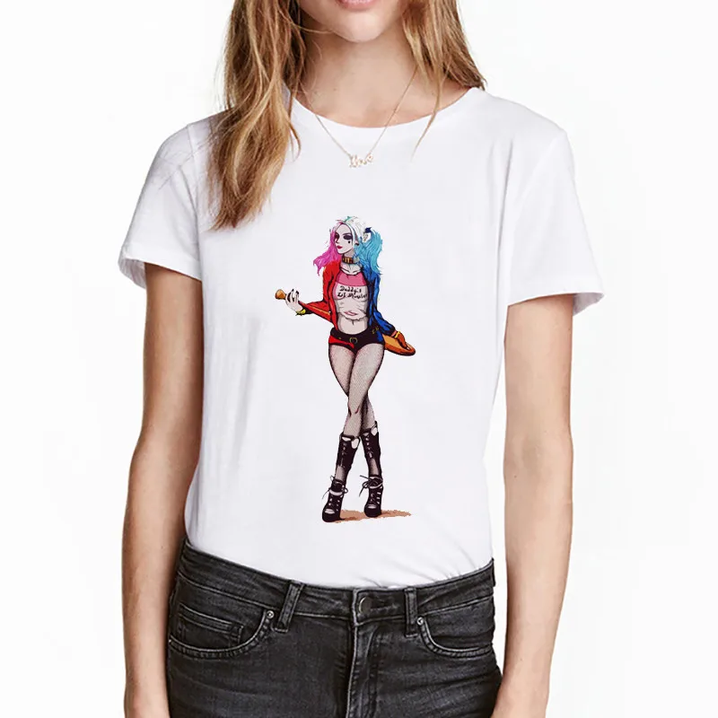 lower price Female White O-neck Cartoon Top Tee Fashion Womens T-shirt Women Suicide Squad Harley Quinn Tshirts