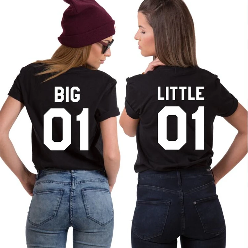 low cost Big Little T Shirt Chic Women Top Girls Big Little 01 Print Best Friends Fashion T Shirt Sisters Bf