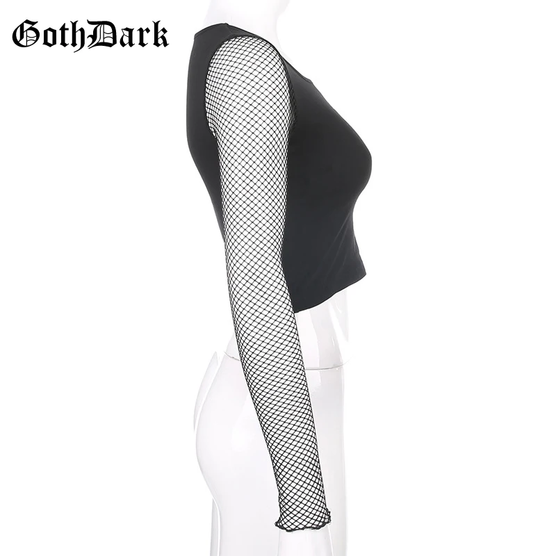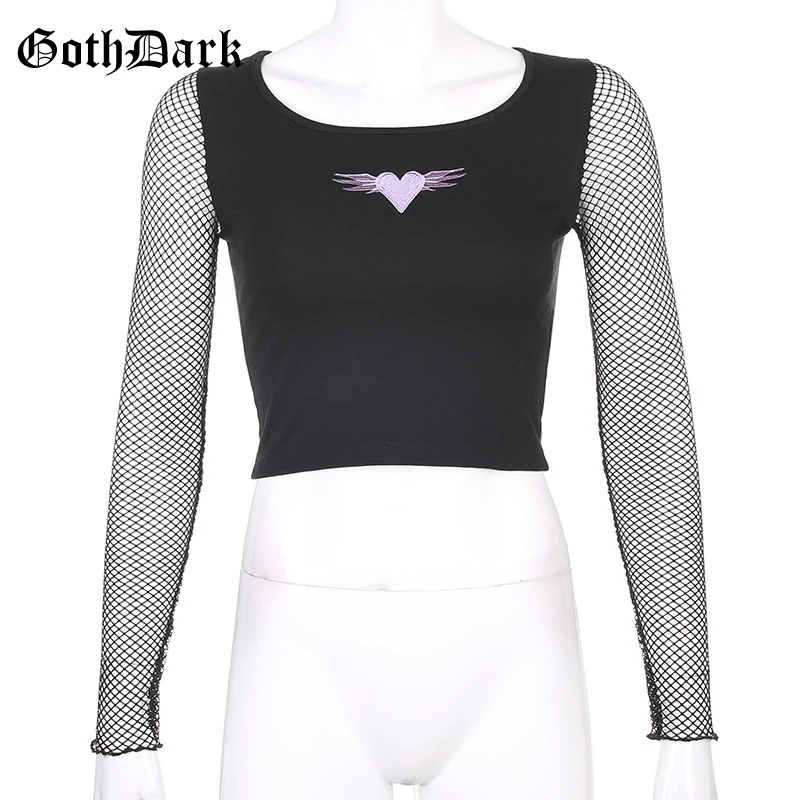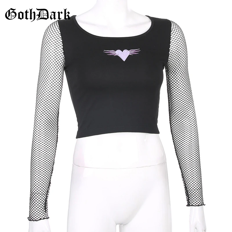 wonderful Goth Dark Vintage harajuku Egirl Gothic T-shirts Emo Women Aesthetic 2020 Longsleeve Mesh Embroider