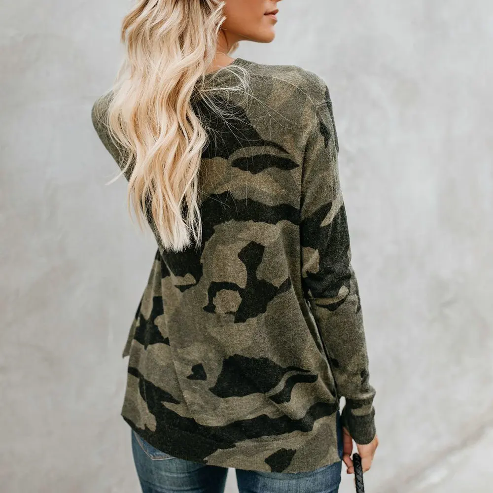 price reduction Army Camo Long Sleeve Loose Shirt Women Shirts Casual Ladies Clubwear 2018 Women Tops Tshirt Women